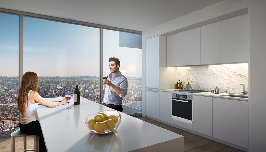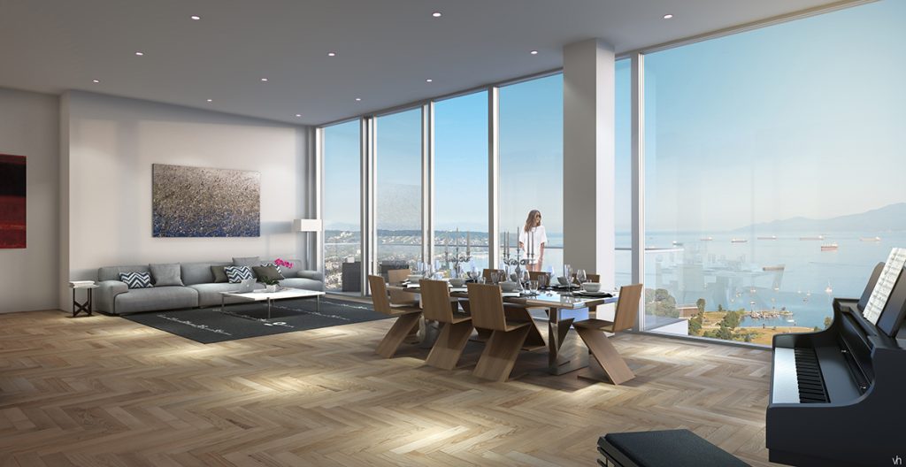 Vancouver House, designed by the Bjarke Ingels Group and built by Westbank Corp., is a total work of art. Located at the intersection of Howe Street and Beach Avenue, this 58-storey building inspired the creation of a new waterfront community: the Beach District. Each one of the 375 homes feature high-quality design and interior finishings as curated by BIG. Residents are steps away from many of downtown Vancouver’s luxuries and natural escapes. The Seawall and False Creek are steps away, while English Bay and Yaletown’s shops and restaurants are only five minutes away. The many high-end building amenities include Biometric access by fingerprint, one of the fastest elevators in North America that goes at 1600 feet per minute, a quiet library and residential lounge with a custom Fazioli Piano, a heated outdoor pool, a 10,000 Sq. Ft. state-of-the-art fitness facility called House Concepts, and 24-hour 5-star concierge services that have been trained by the Fairmont Pacific Rim Hotel.