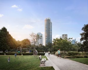 The SOLD OUT Butterfly by Westbank! An exclusive opportunity for a 509 Sq. Ft, 1 bed, 1 bath home with 112 Sq. Ft. of outdoor space in this new ICONIC Vancouver landmark – The Butterfly by Westbank. Envisioned to extend and integrate into the rich landscape of Vancouver’s vibrant West End neighbourhood. With a custom interior by Bing Thom Architects you’ll enjoy a eucalyptus veneered one & a half leaf front entrance door, large format white porcelain flooring throughout all living areas, white painted interior walls and back-painted glass cladding to seamlessly integrate with the kitchen cabinetry. The custom designed Italian-crafted kitchen highlights soft-closing precision cabinets, white back-painted glass cabinetry, custom designed organically shaped eucalyptus leaf island, top-of-the-line custom Miele appliances. Floor-to-ceiling sheer drapery with motorized controls that gently follow the curvature of the tower, the interior curved clear glass walls are appointed with curtains to allow for maximum daylight distribution and a grand appearance. The unique form of the tower will provide Vancouver with a bold, new iconic landmark that highlights the highpoint of the downtown peninsula and the historic gateway into the West End. This new development involves the heritage restoration and expansion of one of the City’s most historic churches, together with the integration of a 550’ luxury residential tower.