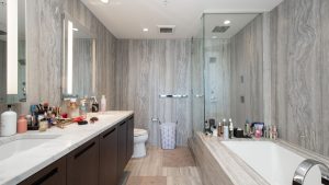 Experience luxury living – AT THE FAIRMONT PACIFIC RIM! This elegant 2-Bed+2-Bath residence with a large pantry is situated on the 39th floor. This home boasts 1,306 Sq.Ft of impeccable, efficiently designed interior living space. Experience unparalleled, sweeping South-West views from the living area and both bedrooms as well as from the expansive 126 Sq.Ft outdoor balcony. Over height ceilings of 9ft and floor-to-ceiling windows provide the full enjoyment of natural light in this suite. Residents can have their own in-suite spa-like experience with the ensuite bathroom and tub.