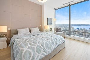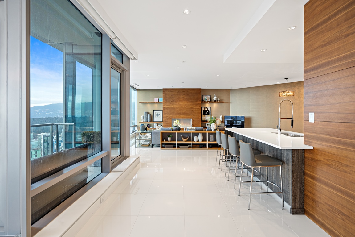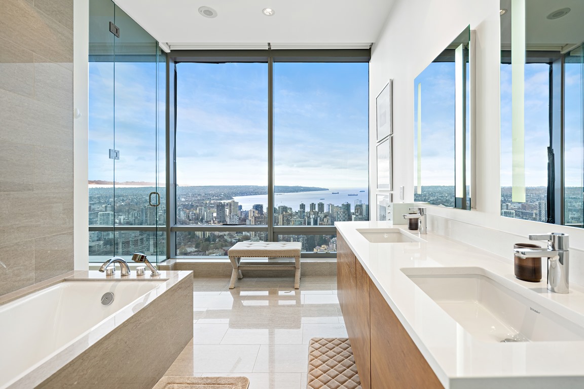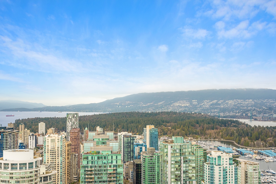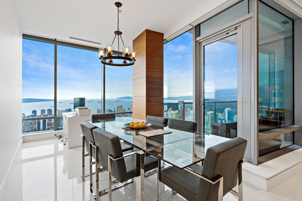This exquisitely fully furnished 45th floor home offers a high-end furniture package, and fully appointed kitchen. Includes one parking stall.