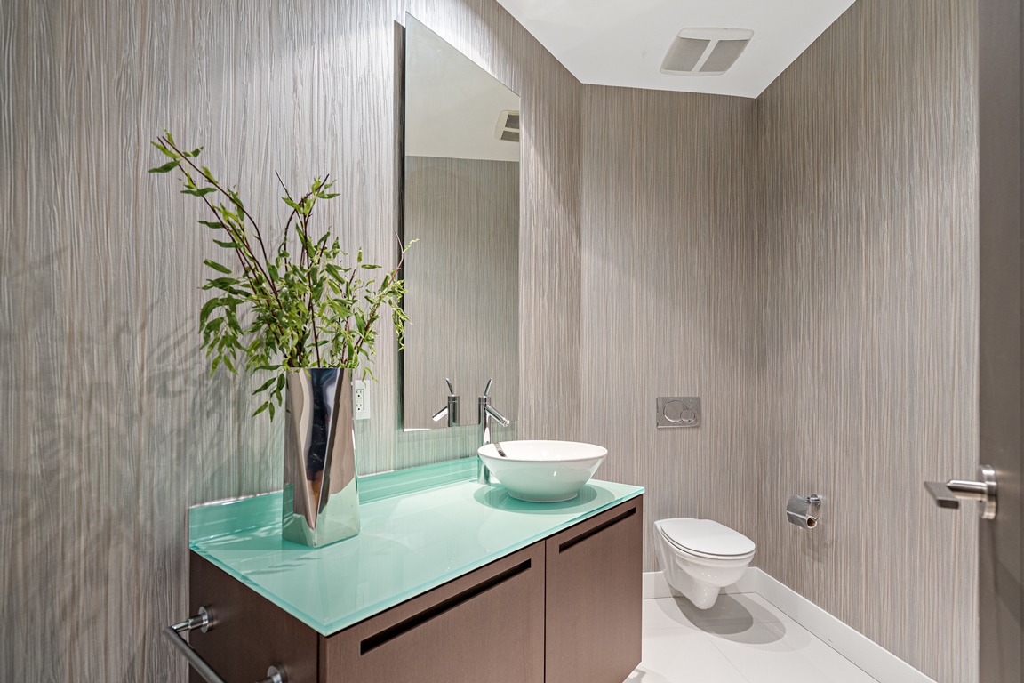 This estate home is outfitted with Sub-Zero, and Miele appliances with polished granite countertops and matching full-height granite backsplash along with Italian wood cabinetry by Boffi. Stunning features don’t stop there! Immaculate marble countertops & flooring with Hansgrophe Axor fixtures & accessories within the baths as well as tailored designer wool carpets throughout each bed.