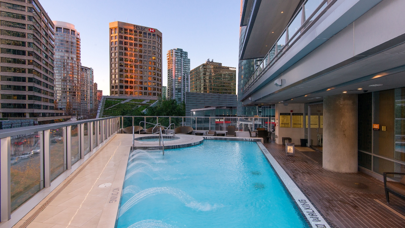The Hyatt hosts 5-star Hotel services that include 24-hr Concierge, an outdoor heated swimming pool, hot tub, state-of-the-art fitness facilities, and the award-winning Chi Spa and Juice Bar. Walking distance from Vancouver’s finest restaurants, shops, cafes and the world-famous Stanley Park and Seawall!