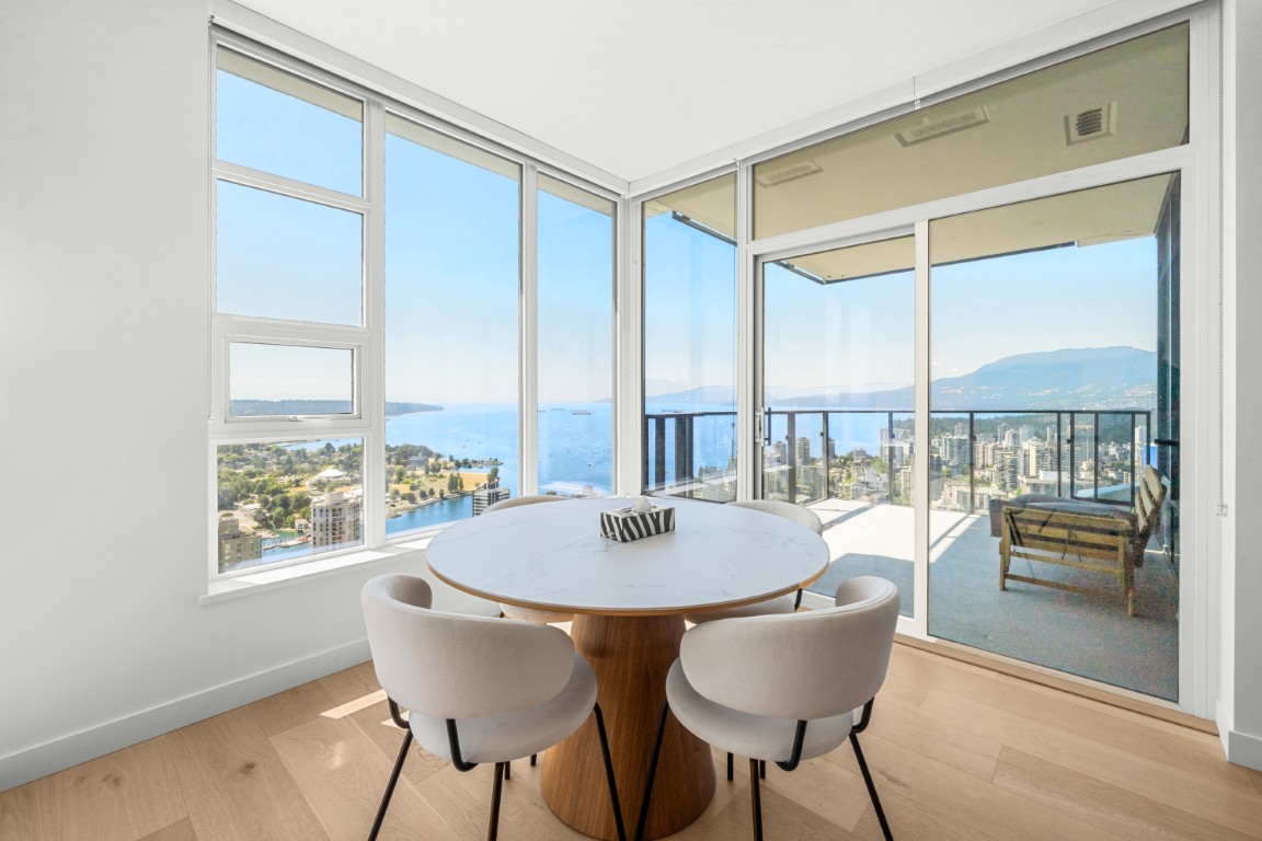 The 49th Floor at One Burrard Place — This stunning corner residence offers approximately 1,600 sq ft of refined interior space with southwest exposure and year-round comfort through central air conditioning and heating. Perched high above the city, it boasts breathtaking panoramic views of English Bay, the North Shore Mountains, and Vancouver’s iconic skyline. Thoughtfully designed, the home features three spacious bedrooms, two and a half bathrooms, and a versatile den, ideal for a home office or flex space. It includes two side-by-side underground parking stalls and a secure bike storage locker. This residence is available semi-furnished with premium European designer pieces from Inform Interiors and other luxury brands, or can be offered unfurnished to suit your personal style and needs. Modern conveniences include a smart home system, built-in wine cellar, and integrated safe—combining elegance with everyday functionality in one of Vancouver’s most prestigious buildings. Luxury amenities include: indoor swimming pool, hot tub, gym, exterior BBQ area.