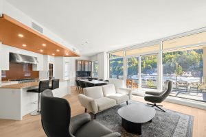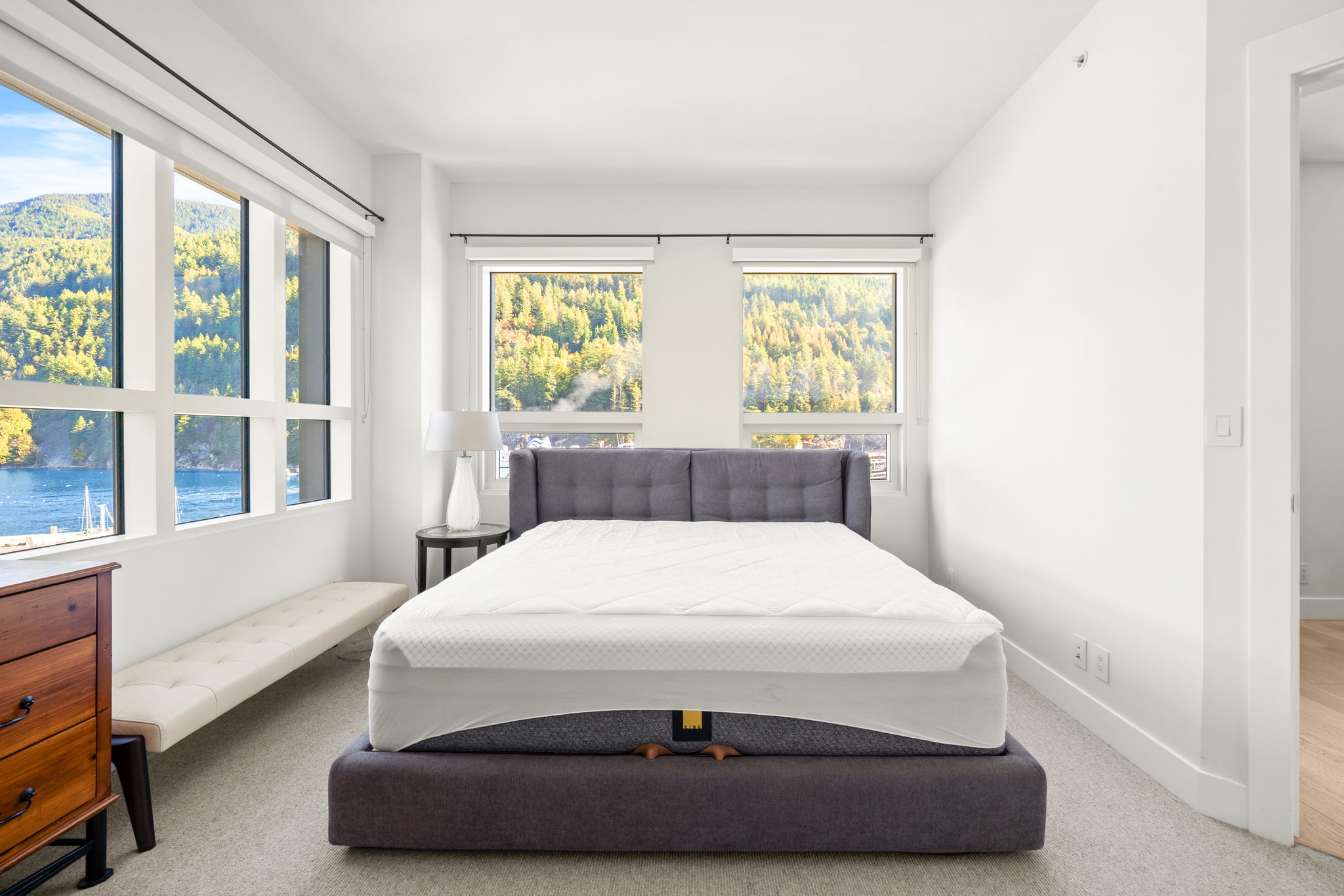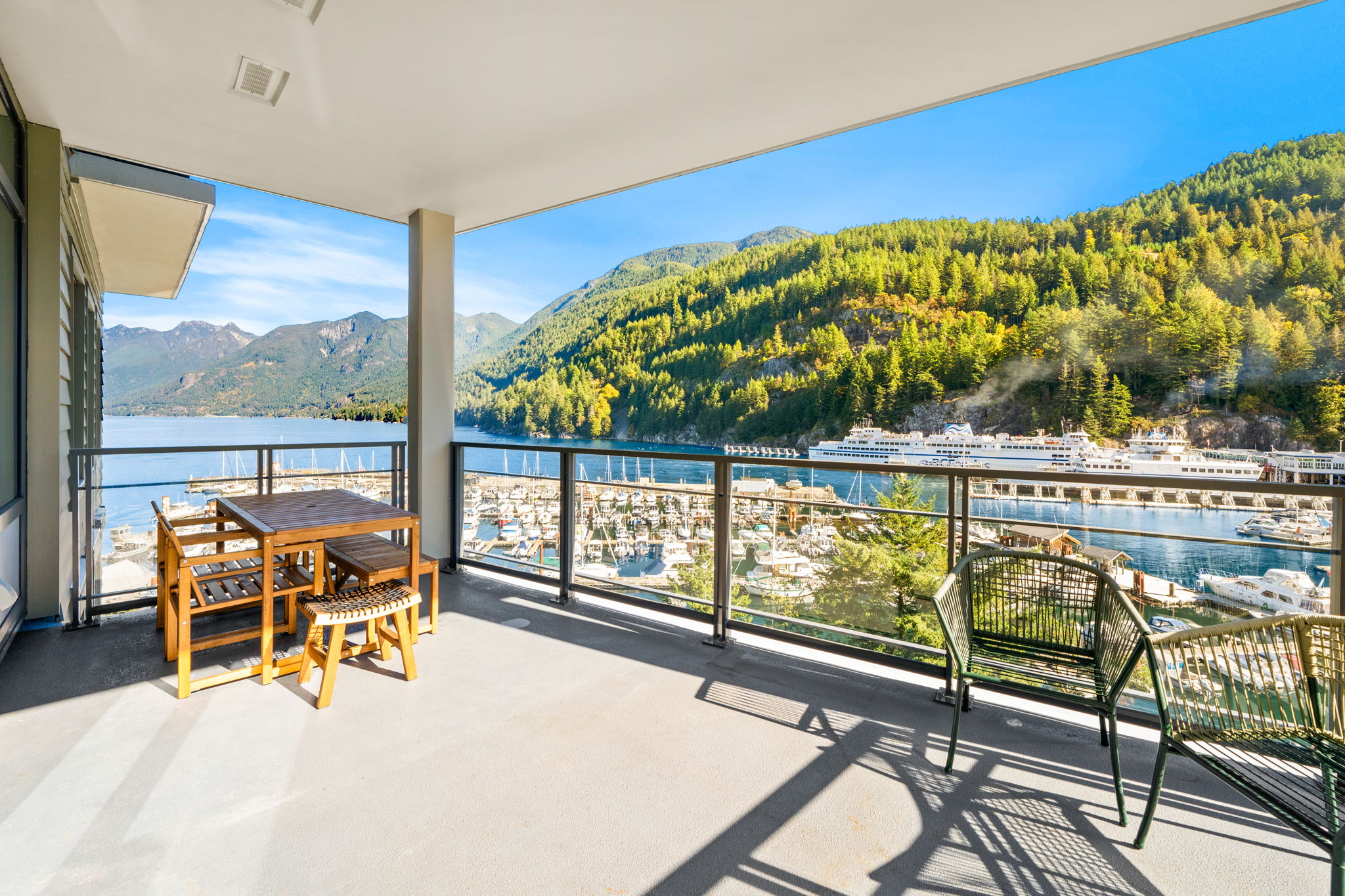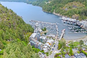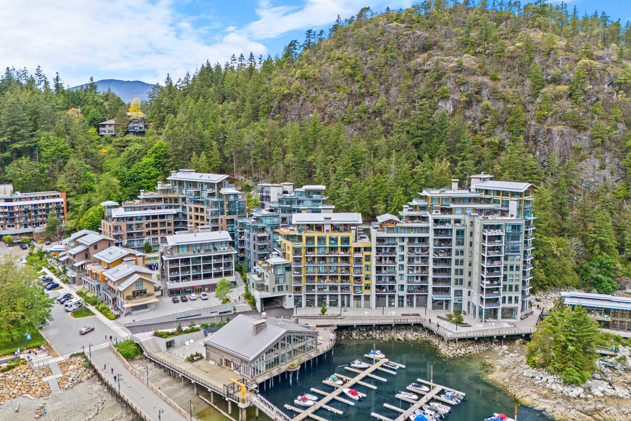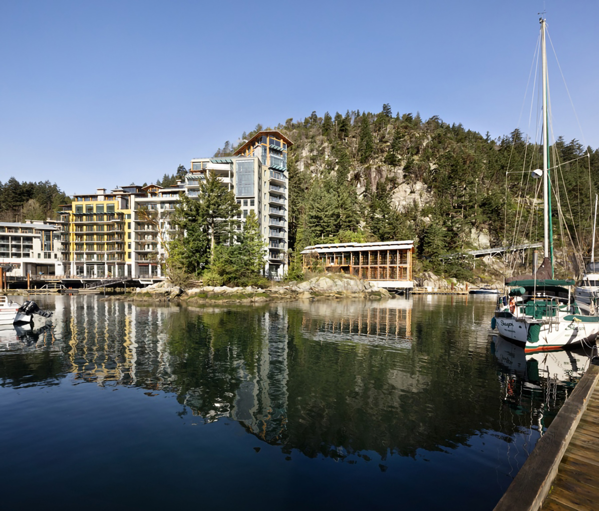Welcome to Horseshoe Bay Sanctuary by Westbank — a luxury waterfront community inspired by Portofino and completed in 2022. Nestled just steps from local favorites like Olive & Anchor and Flour Bakery, this exclusive development offers easy access to downtown Vancouver and Whistler. This elegant 2-bedroom + den, 3-bathroom residence features 1,772 sq. ft. of interior living and 226 sq. ft. of outdoor space, showcasing breathtaking marina and mountain views. The chef-inspired kitchen includes Miele appliances, Corian countertops, and a copper satin backsplash. A limestone fireplace, wood flooring, and over-height ceilings add warmth and sophistication throughout. Residents enjoy world-class amenities, including a 24-hour concierge, state-of-the-art fitness center, and boat house access.