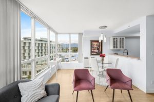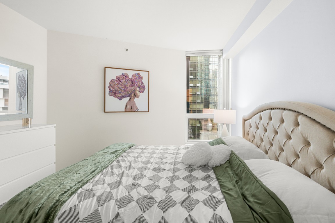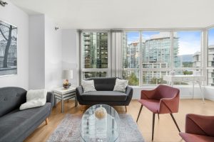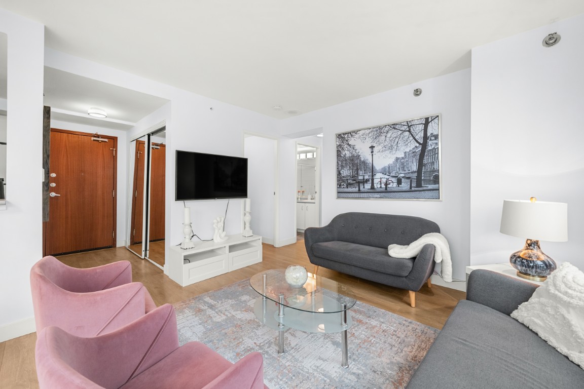 Welcome to Harbourside Park in Coal Harbour! This 589 sq. ft. furnished condo is cozy, charming, and equipped with everything you need for comfortable downtown living. The home features 1 bedroom + den, 1 bathroom, in-suite laundry, 1 parking stall, and 2 storage lockers. Residents enjoy access to outstanding amenities including an indoor pool, hot tub, fitness centre, meeting room, theatre, party rooms, and 24/7 security. Perfectly located just steps from the Seawall, Stanley Park, world-class dining, shopping, transit, and all that downtown Vancouver has to offer.