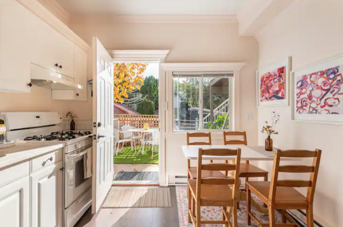 Welcome to this bright and spacious fully furnished 1-bedroom, 1-bathroom home located on the main floor of a charming Mount Pleasant property. This well-appointed suite offers a generous living room, a dedicated dining area, in-suite laundry, and a private patio with access to a shared backyard—perfect for enjoying your morning coffee or winding down in the evening. Street parking is also available.