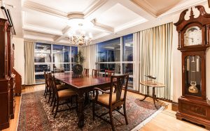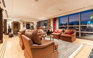 The Wall Centre Penthouse provides an unparalleled living experience, covering the entire 30th floor spanning over 7,130 Sq. Ft. with panoramic 360° views of water, mountains, and the city and 2,300 Sq. Ft. of unobstructed outdoor living. This opulent home features 5 bedrooms and 8 bathrooms, with a European inspired interior boasting designer finishings and fixtures, complete with the latest technology, including surround sound, high-end security, and direct, secure elevator access. The chef’s kitchen, full bar and 16-person dining room are ideal for entertaining, while other highlights include a butler’s pantry with built-in temp-controlled wine storage, private office with over 20 Ft. ceilings, personal home gym, 7 parking stalls and a large storage locker. Enjoy the Sheraton Wall Health Centre Amenities including gym and spa for a modest monthly fee! This unmatched home is surrounded by luxury boutiques and the finest restaurants. A rare opportunity!