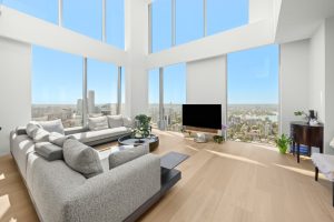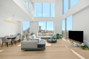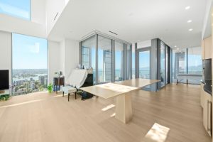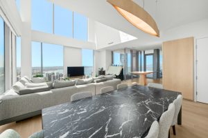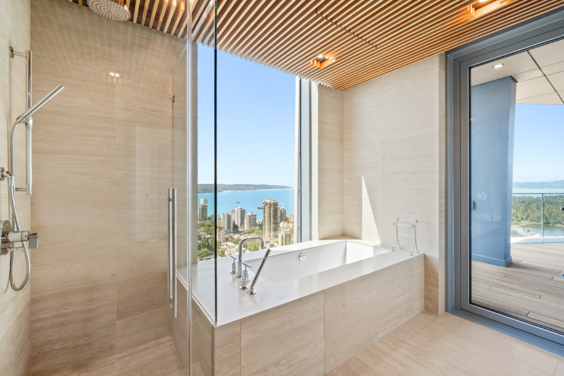 Experience the crown jewel of Alberni by world-renowned architect Kengo Kuma. This extraordinary skyhome is bathed in natural light, offering breathtaking panoramic views of Coal Harbour, the North Shore Mountains, and English Bay. The expansive living and dining area, with soaring 20-foot ceilings, sparkles with reflections from the private glass-bottom swimming pool and spa above. A dramatic open staircase clad in bleached white oak, or the private glass elevator, leads to three expansive outdoor terraces totaling over 2,200 square feet. The primary bedroom is a sanctuary with its own outdoor soaker tub, while residents enjoy the prestige of four private wine lockers, and access to world-class amenities with 24/7 concierge service.